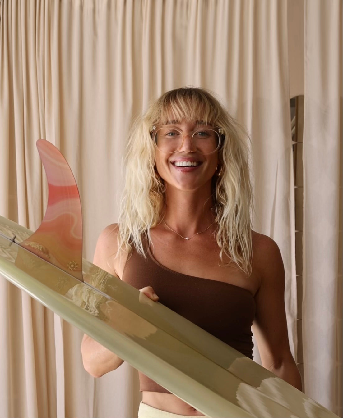 BEYOND DESIGN, MADDY IS ALSO THE HEART BEHIND SURFEBRUARY, A MOVEMENT THAT BRINGS SURFERS TOGETHER TO RAISE AWARENESS AND FUNDS FOR CANCER RESEARCH. EVERY FEBRUARY, SHE BUILDS A COMMUNITY OF OCEAN LOVERS COMMITTED TO MAKING WAVES—BOTH IN AND OUT OF THE WATER. THAT SAME SPIRIT OF CONNECTION AND PURPOSE IS WOVEN INTO EVERY DETAIL OF THIS FIN.
