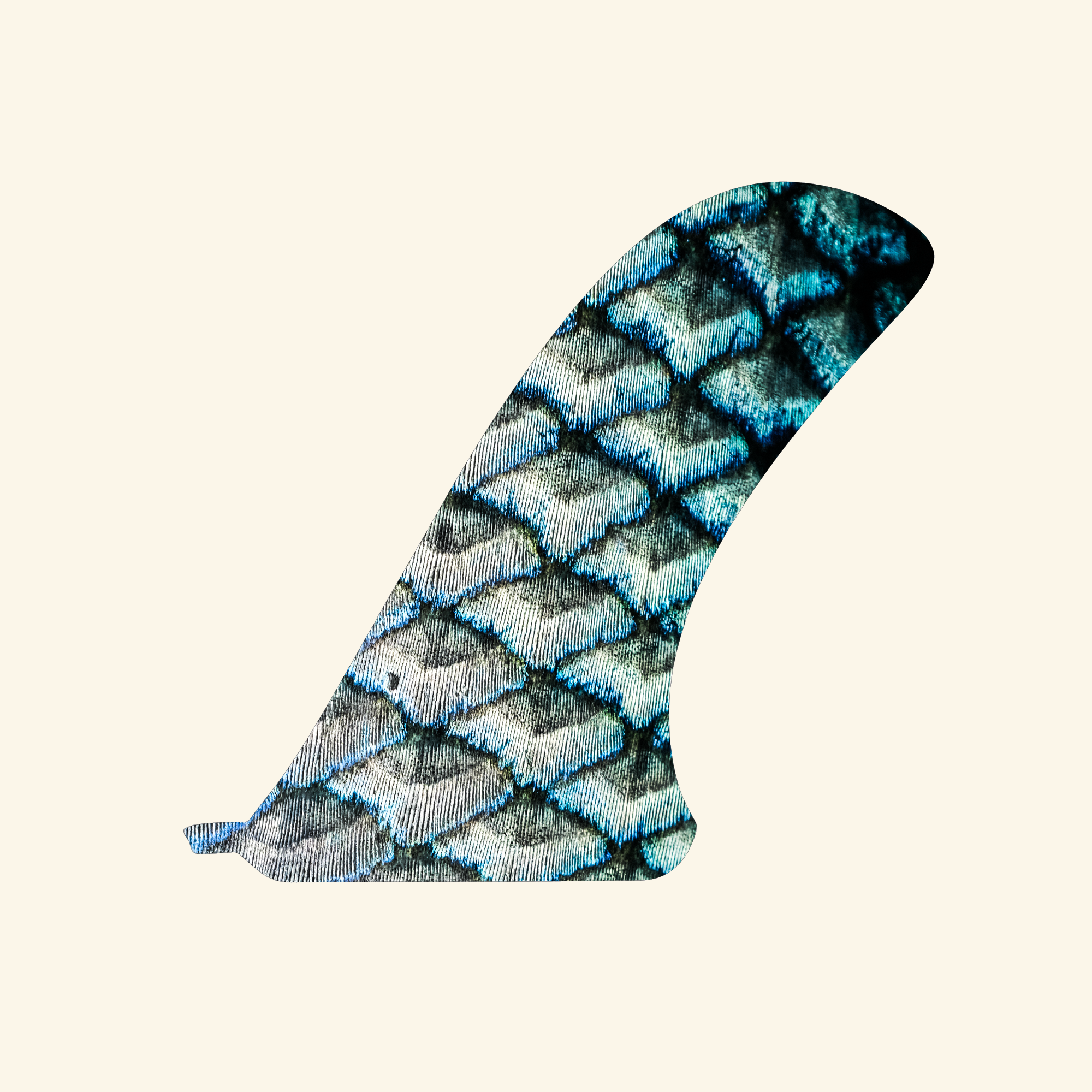 ONE TRANSFORMATIVE ENCOUNTER STANDS OUT IN KIMI’S JOURNEY. WHILE SPEARFISHING, SHE CAPTURED A STUNNING AWA, ITS SLEEK, SILVERY BODY GLINTING IN THE SUNLIGHT. MOVED BY THE FISH’S BEAUTY AND THE SIGNIFICANCE OF THE MOMENT, KIMI, ALONGSIDE HER HUSBAND JUSTIN, SOUGHT TO IMMORTALIZE THE EXPERIENCE. FROM THE DELICATE PATTERNS OF THE AWA’S SCALES, A UNIQUE DESIGN WAS BORN—NOW INTRICATELY CRAFTED INTO THE DESIGN OF HER SIGNATURE SURFBOARD FIN.